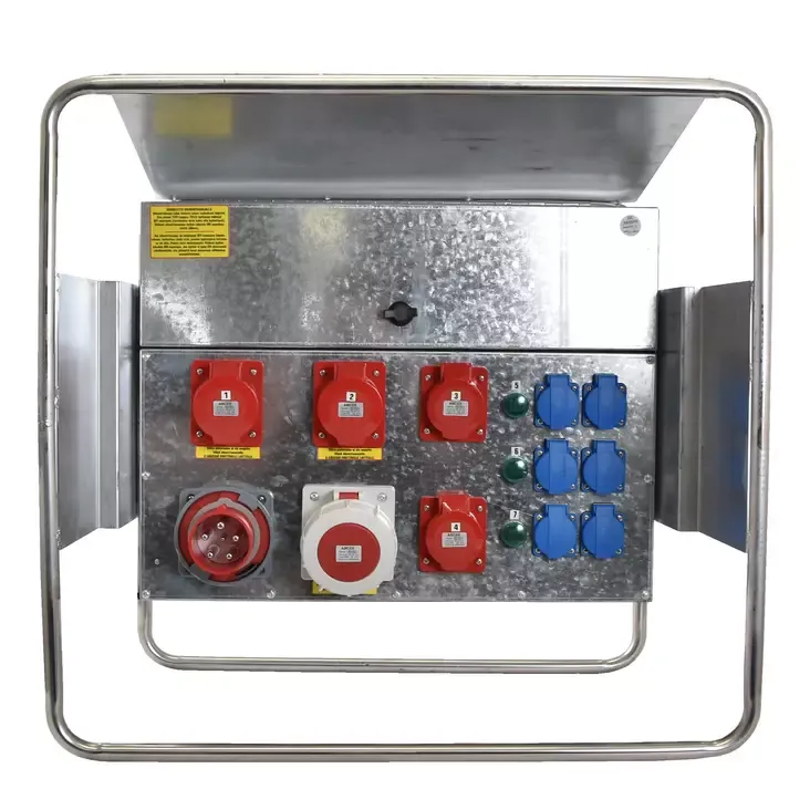 63 A työmaa-alakeskus/porraskeskus Vikavirtakytkimin varustettu liitännät 6x220w Schukopistorasia. 2x16A Voimavirta 2x32A Voimavirta 1x63A Voimavirta